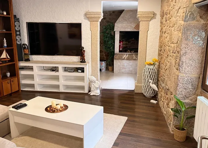 Vila Vila Casa De Encanto Villanueva De Arosa je umístěna 4 km od Derby Vilagacia, je 2-ložnicové ubytování s terasou. Nemovitost nabízí jacuzzi pro odpočinek.